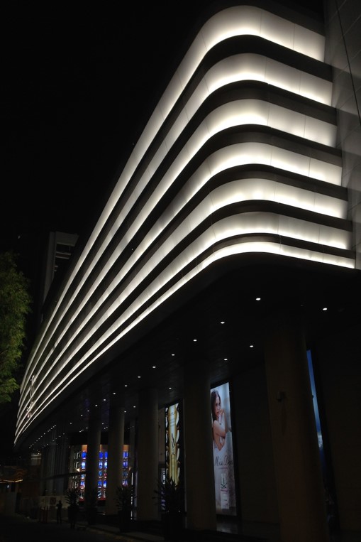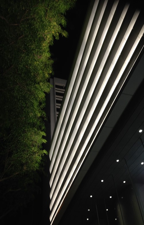 Facade System: Metal Panels with Concealed Lights Integration & Glass Canopy